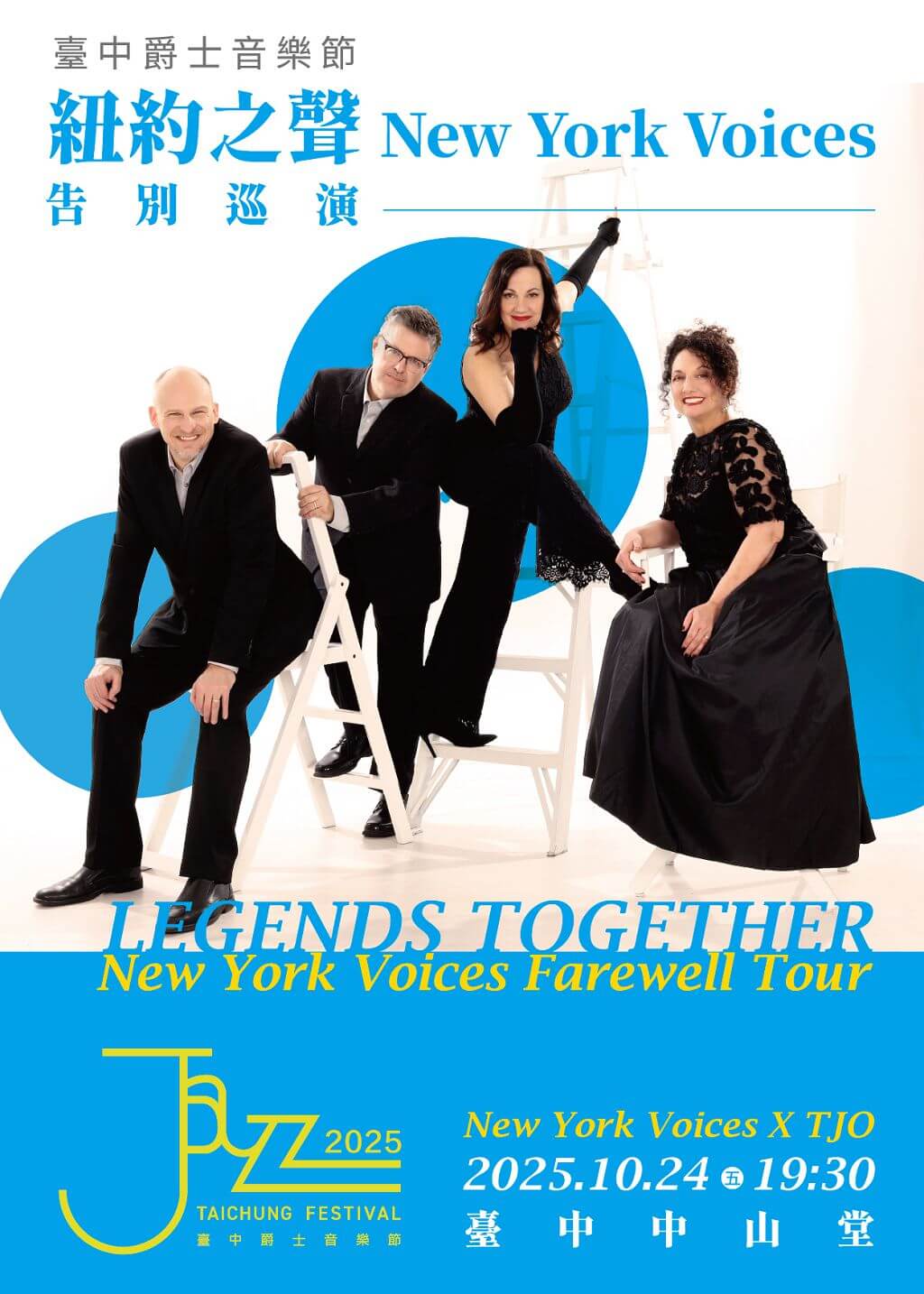 2025臺中爵士音樂節迎來極具歷史意義的一夜——當代最具代表性的人聲爵士團體紐約之聲 New York Voices 首度來到臺中,展開他們休團前的最後世界巡演,以完美和聲與深厚情感,為臺灣樂迷獻上一場難得一遇的經典演出。